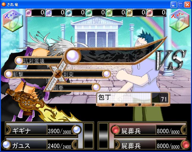いや,あれですよ,とりあえずされ竜のほうが一段落着いたんで,ほんの少しだけゆる~りまた~りとしてた日々を過ごしていたわけなんですが,そんな風にだらだらしてるとつい 「あ,そういや最近自分ブログ書いてないんじゃ」 とか思い返してみて覗いてみたら,他の二人も書いてねえよ……。ということが発覚。いわゆるいや~んな事態ですな。 実はされ竜のデバッグしてたんですが,完璧だと思っていたら叩けばいろいろと出てきました。ぐはっ!ショックを隠しきれません。 そんなわけで何度かプレイして自分が気づいたとこだけは修正しました。もう原版上がっちゃってるらしいんで,修正パッチ出さなくては見たいな感じです。ほんとすみません。 でももう駄目っす。され竜はもうくたくたなんで,早いとこ終らして自分のことしたいな思うてます。 とりあえず新しいネタが何個か浮かんでるので,それを使って小説でも書きたいですね~。