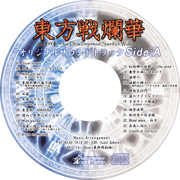 というわけなのでそろそろ更新しなければという焦燥感に駆られる日々が続いています。 前のブログでも告知したとおり今回はちゃんと新作を持っていけそうです。 それに加えて本の新刊も用意できました! 東方オンリーイベント最大規模の例大祭を前に過去最強の布陣といえる豪華なラインナップに心躍っています。そんなわけなのでせっかくできた画像をあげておこうかなと思いました。 こちらは東方戦爛華 咲夜の章東 ~for Dear Perpetual Sacrifice Waltz~のジャケットです。 今回はちょっと趣向が違うのでジャケットのキャラクターが二人だけになってます。頒布価格は他の作品と同じく500円かな。 そしていつもお馴染みのオリジナルサウンドトラックもつきます。 これは会場限定で先着順なんで欲しい人がいたら早めにきてくださいね。 これが今回の新刊、その名も正体不明本!B5の32Pとボリュームもなかなかで読み応えがあります! これ以上は正体不明なので、気になる方は会場で確認してくださいね。 こうやって書き並べると、例大祭に向けての気合がひしひしと伝わってきます。 またイベント前になったらお品書きとか更新しますので、楽しみにしてくれていると嬉しいです。