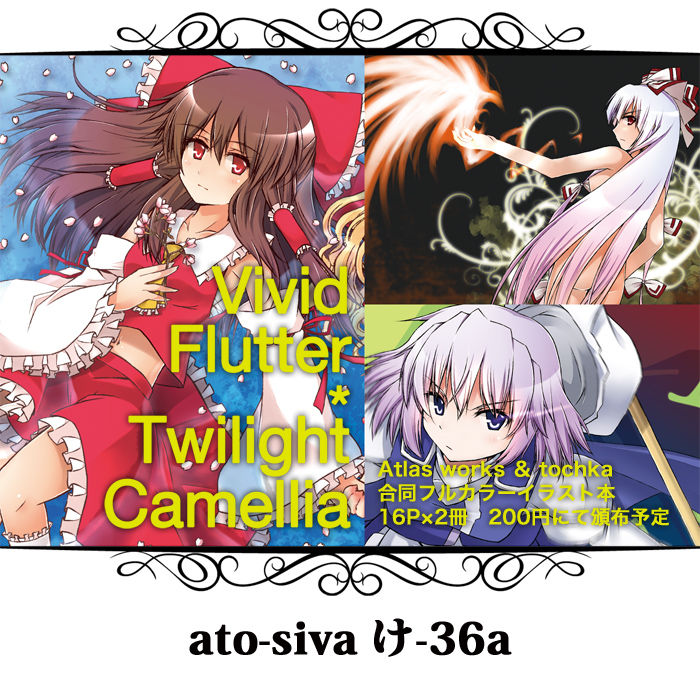 スペースまで立ち寄ってくれた方、また差し入れを入れてくれた方、皆本当にありがとうございました。 今回は体験版の無料配布ということで、結構な数を用意しました。作りすぎたかと不安にも思いましたが、来て頂いた方が皆取ってくれたので、目標数出すことができて大変嬉しかったです。 これはもう夏に落とせないとフラグが立つ一方で、作品の感想なども聞けてとてもやる気が沸いてきました。 夏コミまで残り三ヶ月、途中で1つイベントを挟みますが、ここからが正念場なので気合を入れていきたいと思います。 また大きな進展があればブログに載せていきたいですね。それではまた。 気がついたらもう例大祭の前日となっていました。 ・東方戦爛華 霊夢の章 ~Independence for Oneself~(旧作) イベント頒布価格 500円 内容は特設ページ(http://trafro.client.jp/product/touhou/index.html)を参照下さい。 ato-siva 東6 け-36a イベント頒布価格200円